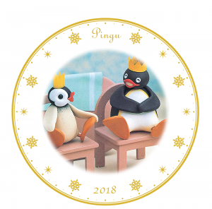 2018年のイヤーズプレートは、王冠をかぶったピングーとピンガのワンシーンです。