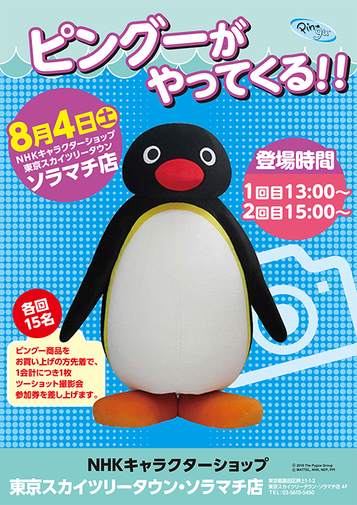 8月4日(土)NHKキャラクターショップ 東京スカイツリータウン・ソラマチ店にピングーがやってきます!