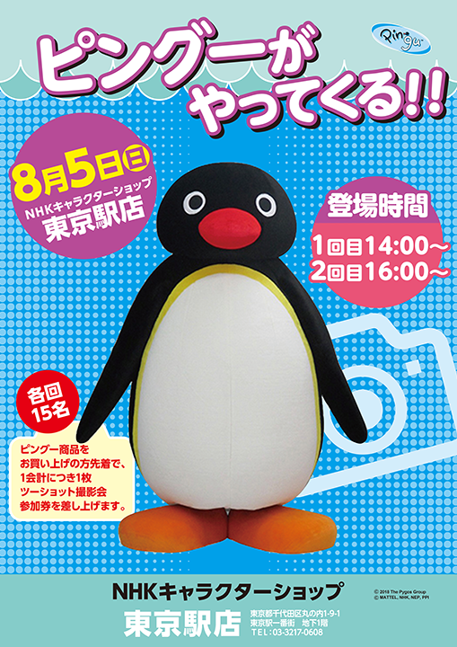8月5日(日)NHKキャラクターショップ 東京駅店にピングーがやってきます!