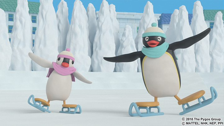 リンクで軽やかに滑るフィギュアスケーターの姿を見てピングーとピンガは大興奮!張り切って滑り始めた二人に、見ている人たちは拍手で応援。調子に乗った二人はリンクを飛び出して街へ。住人たちを巻き込んで、アイスショーが始まった…。