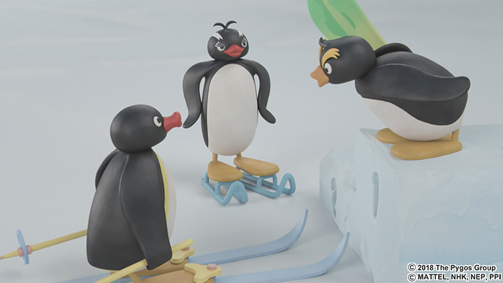 ピングーはスキー、友達はスノーボードやスケートを楽しんでいたが、一番速いのは自分に決まっている、と言い合いが始まった。それならレースで決着をつけようと、街を見下ろす山の上へ。そこにロビもボブスレーで加わって、大レースがスタート!
