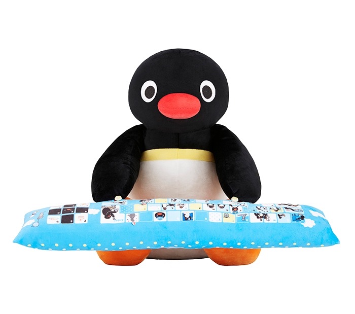 ぬいぐるみ本体は「ピングー」の愛らしい姿を忠実に再現。程よい硬さと滑らかな手触りにこだわったぬいぐるみをデスクと体の間に抱くことで、楽な姿勢でPC作業ができます。