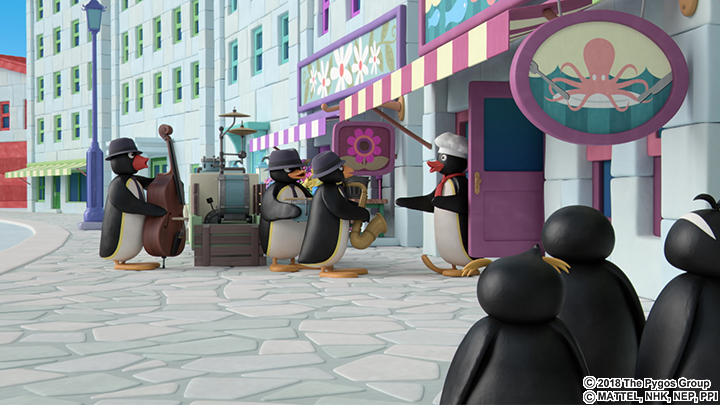 レストランにジャズバンドがやってきた。ステキな演奏に憧れるピングーたちは、僕たちも一緒に演奏したい!と、早速バンドを作るが、手作りの楽器ではなかなか音が出ない。でも、口まねで演奏してみると、なんだかいい感じ!ピングーたちは、一緒に演奏するためにレストランに向かうのだが…
