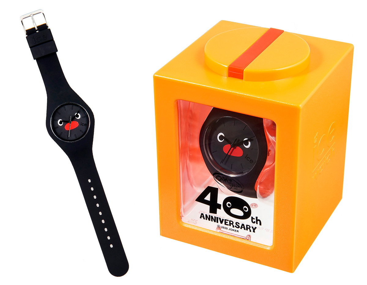 盤面はピングーの顔でシンプルに、ベルトの裏地はオレンジを差し色にさりげなくおしゃれな腕時計です。