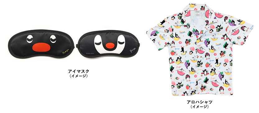 コラボルームにご宿泊の方に、女性に人気のフルーツ柄イラストが散りばめられたアロハシャツと寝顔のピングーとピンガが両面にプリントされたアイマスクをプレゼントいたします。どちらもここでしか手に入らない数量限定のプレミア品です。