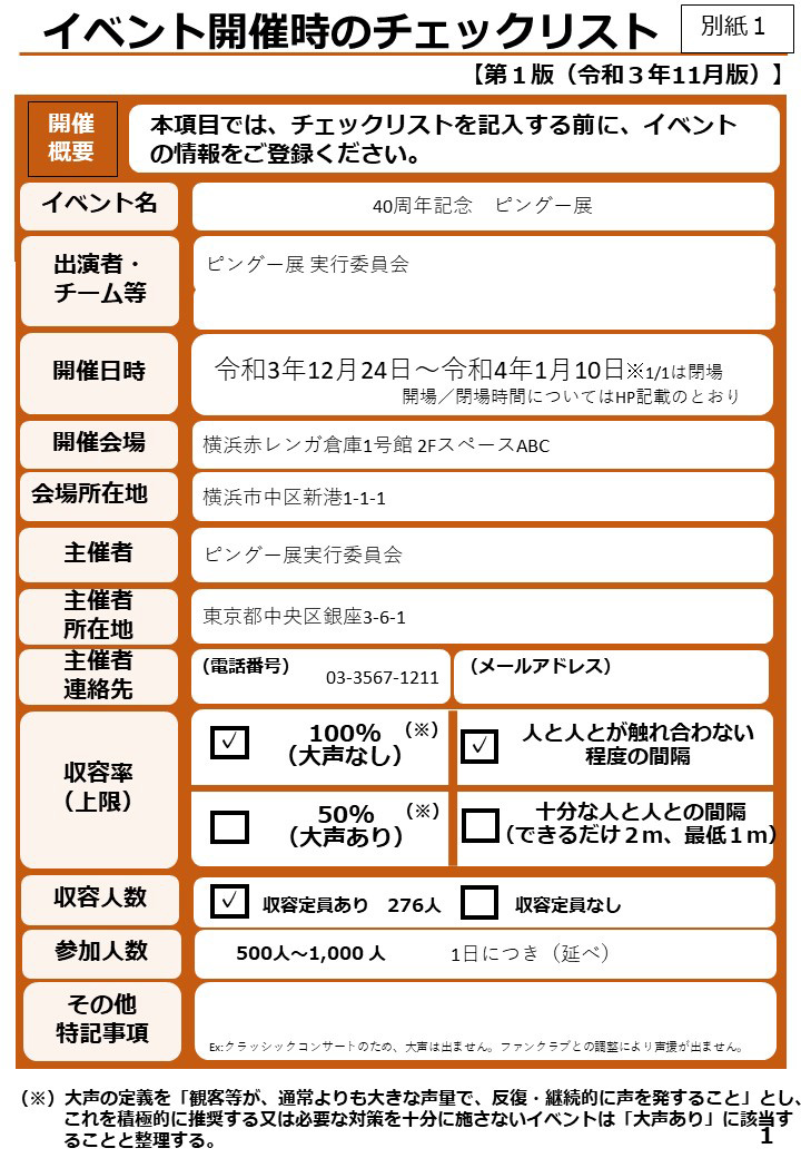 イベント開催時のチェックリストを公表いたします。