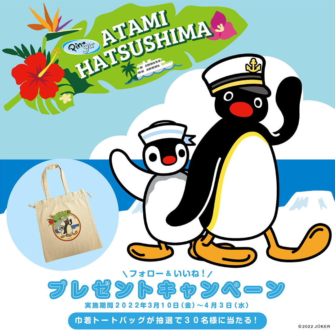 ピングー公式Instagramフォロー&いいね!プレゼントキャンペーン 熱海初島ピングーコラボイベント「オリジナル巾着トートバック」が抽選で30名様に当たる!!