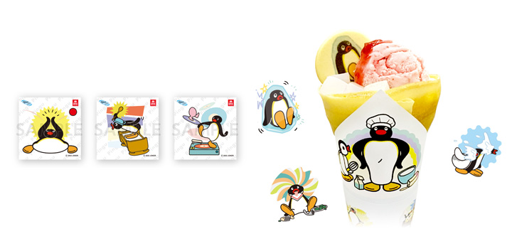 人気のシーンやピングーの世界観をモチーフにしたクレープと、新アート「Sense of Pingu」を取り入れた巻紙やノベルティはファン必見💖